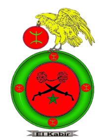 Okrągła, czerwona tarcza herbowa z szeroką zieloną bordiurą, na której złożone są na przeciw siebie, dwie w słup, dwie w pas, okrągłe tarczki czerwone, z zielonym znakiem berberyjskim: dwie połutoczenice, zwrócone do siebie barkami, połączone pionowym pałąkiem. Na środku, dwa skrzyżowane, pałaszami ku górze, czarne arabskie miecze, ponad zieloną pięcioramienną gwiazdą. Ponad mieczami napis arabski pochwalający imię Allacha. Jako klejnot orzeł złoty z rozpostartymi skrzydłami zwrócony w prawo, trzymający w dziobie małą czerwoną tarczkę z takim samym znakiem berberyjskim.