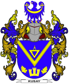 Przedstawiona linia genealogiczna to: fundator herbu Günther Kusay, wyznania katolickiego, dypl. inżynier budownictwa. Urodzony w miejscowości Malino koło Groszowic, okręg Opole. Ożeniony w Gräwenweisbach dnia 02.08.1959 z Ritą Kusay z domu Sternagel, urodzoną 03.11.1935 roku w miejscowości Friedland na Śląsku. Dwoje dzieci: Kusay Andreas ur. 18.07.1960 w miejscowości Hundstadt oraz Bertram Kusay urodzony dnia 07.05.1963 w Usingen. Ojciec fundatora herbu własnego Kusay, Johann Pius Kusay, technik budowlany, wyznania katolickiego, urodzony 05.05.1896 w miejscowości Grundschütz pod Opolem, zmarły dnia 27 marca 1958 roku w Hundstadt. Ożeniony dnia 03.03.1930 roku z Gertrudą Anną Morban urodzoną dnia 13.06.1904 roku w Oławie, zmarłą dnia 13.09.1992 roku w Hanau, w Niemczech, kraju związkowym Hessen. Pradziadek fundatora herbu własnego Kusay, Gregor Kusay urodzony w miejscowości Grundschütz okręg Opole poślubił dnia 12.08.1894 roku w miejscowości Gruden na Śląsku, okręg Opole, niejaką Emilię Franczok urodzoną 10.04.1858 roku.