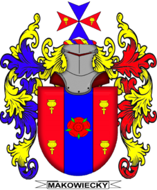 W czerwonej tarczy niebieski słup, na którym pośrodku złożona złota róża. Na polach bocznych, w słup złożono po dwie główki maku o barwie złotej. Klejnot krzyż maltański w barwach: w słup niebieska, w pas czerwona gdzie na ramionach złożono dwie złote główki maku, po jednej z każdej strony. Labry w barwach niebiesko-złotych, czerwono-złotych.