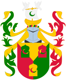 Tarcza trójdzielna w rosochę na opak, w barwach złoto-czerwono-zielonych. Na liniach cieciach po jednej kopule meczetu o barwach przeciwległych pól i prześwitach w postaci półksiężyców położonych w prawo skos przez które przechodzą barwy tarczy. Klejnot, na złoto czerwono-zielonym zawoju, złota łódź o jednym srebrnym żaglu, obłożonym zielonym półksiężycem położonym w prawo skos, Na złotej rei, siedzące do siebie, z rozpostartymi skrzydłami, dwa srebrne gołębie. Labry, prawy, zielony podbity złotem, lewy czerwony podbity złotem.